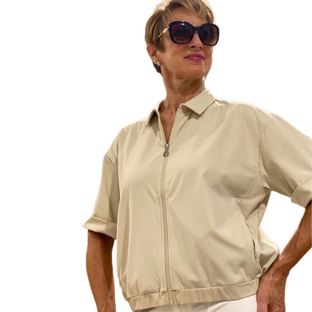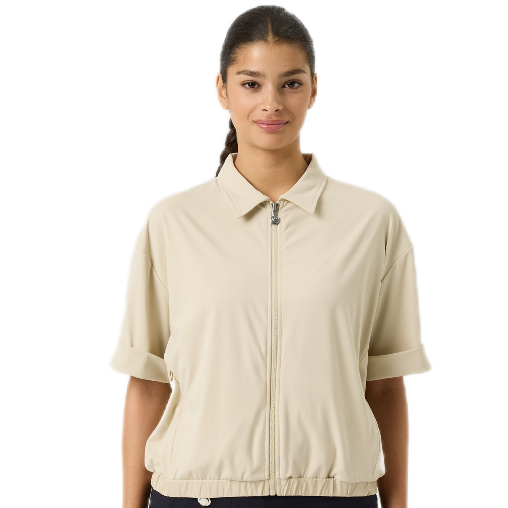 Dit T-shirt jacket van Daily Sports is een geweldig gaaf nieuw item in de collectie. Het is een sportief, stoer shirt met verlaagde schoudernaden en korte mouwen, gemakat van zachte stof voor een comfortabel gevoel. Elastische boord en steekzakken combineert het een sportieve uitstraling met alledaagse comfy veelzijdigheid. Kleur oyster beige.