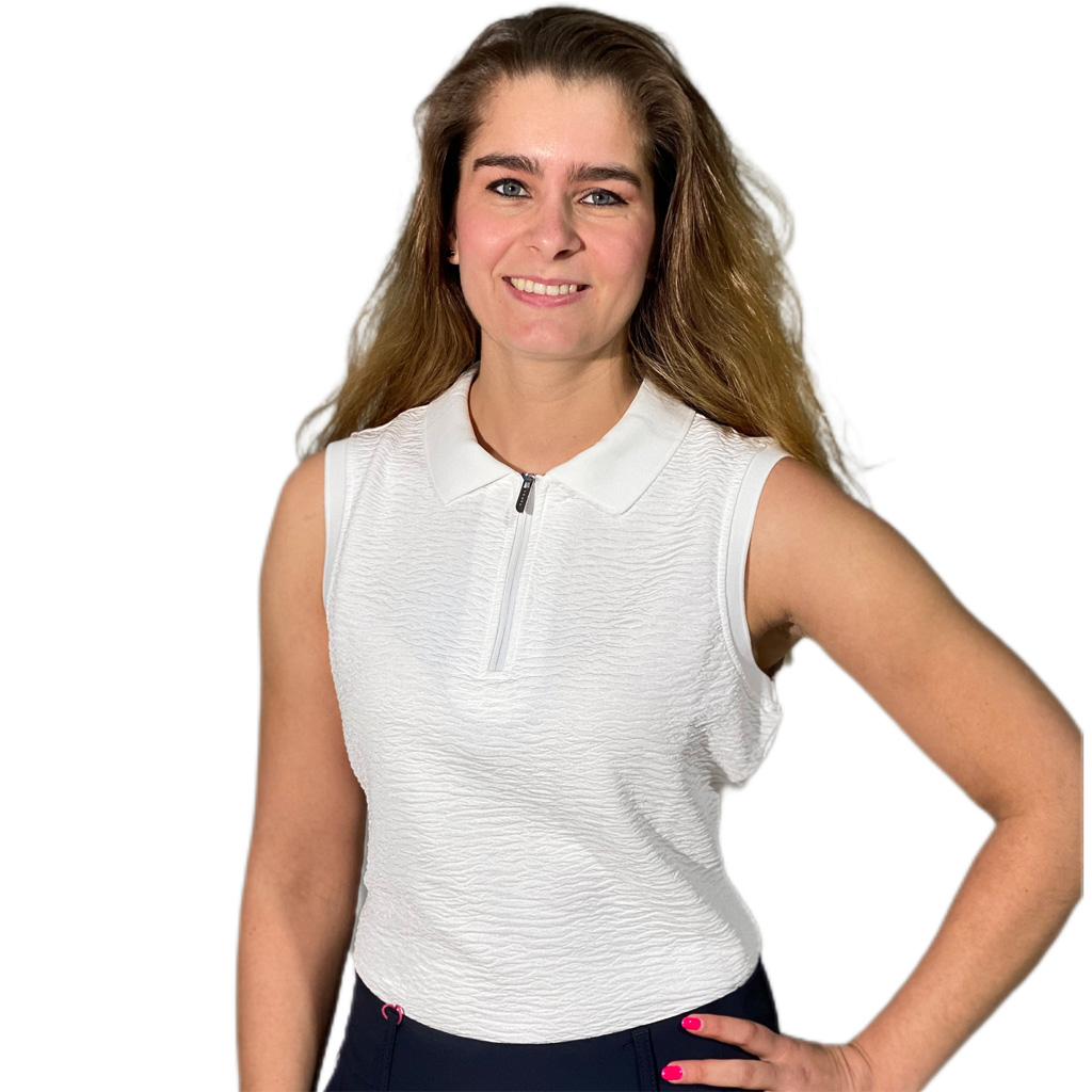 Het Inkeroinen mouwloze poloshirt is een comfy damespolo, gemaakt van zachte rib stof, perfect voor warmere dagen op de golfbaan. Sportieve halve ritssluiting. 100% polyester. Kleur white