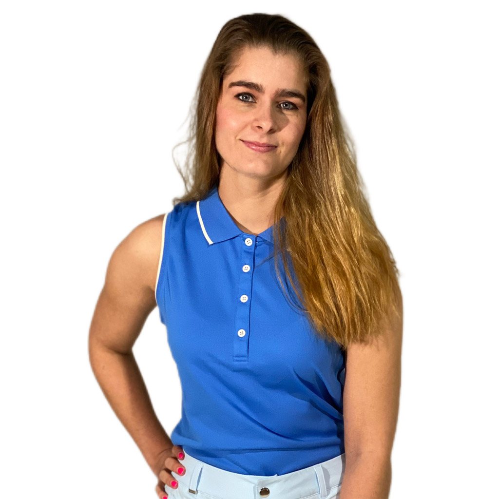 De Kivisaari damespolo van Luhta is een sportieve mouwloze polo met een mooie afwerking. Het golfshirt is gemaakt van stretchy quick-dry materiaal dat ervoor zorgt dat u heerlijk koel en droog kunt golfen. Deze damespolo heeft een knoopsluiting. Materiaal 100% polyester. Kleur Blue
