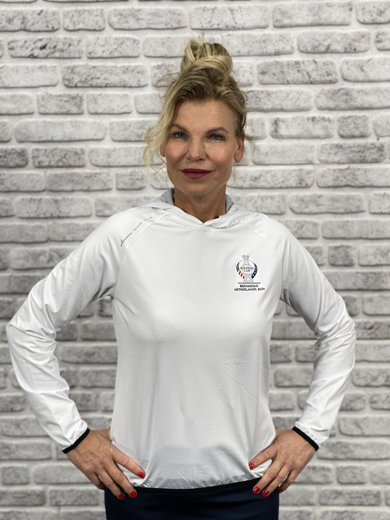 Deze Loop Hoodie van Abacus is extra speciaal door het officiele Solheim 2026 logo. Het Zweedse merk Abacus heeft de officiele licentie om de logokleding voor de Solheim Cup te produceren. Deze kans wil je toch niet missen? Deze hoodie is stoer en sportief, gemaakt van heerlijk zachte, stretchy stof. Perfect voor koudere dagen op de golfbaan. Ook superleuk op een spijkerbroek. Gemaakt van ademend, dry cool materiaal. Valt normaal in de maat. 92% polyester 8% spandex. Kleur White. Inclusief officiele geborduurde Solheim logo.