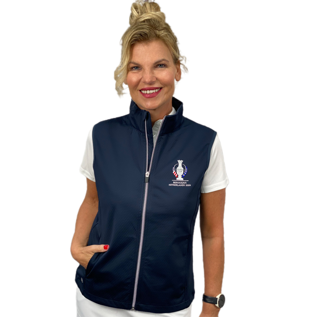 Dit Lytham Softshell Vest van Abacus is extra speciaal door het officiele Solheim 2026 logo. Het Zweedse merk Abacus heeft de officiele licentie om de logokleding voor de Solheim Cup te produceren. Deze kans wil je toch niet missen? Dit windvest houdt je lekker warm op koudere golfdagen, winddicht en ook waterafstotend. Steekzakken. Ademend en stretchy. Valt normaal in de maat. 100% polyester. Kleur Navy. Inclusief officiele geborduurde Solheim logo.