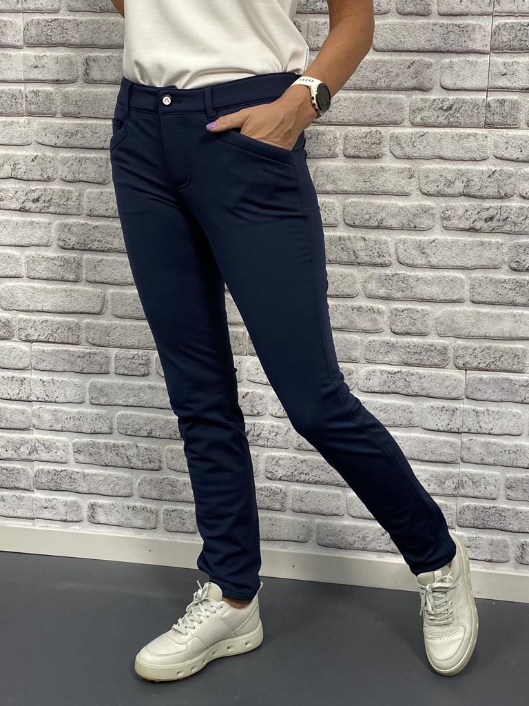 Deze Jana Cosy golfbroek van Alberto is een geweldige winterbroek in blauwe kleur met subtiele ruitprint. De stijlvolle broek is aan de binnenzijde gebrushed voor extra warmte tijdens de koude maanden en bovendien is deze damesbroek water- en vuilafstotend. Regular fit met sportieve smallere pijpen. De zachte rekbare stof zorgt voor maximale bewegingsvrijheid. Sneldrogend. 85% polyamide 15% elastane. Kleur Navy