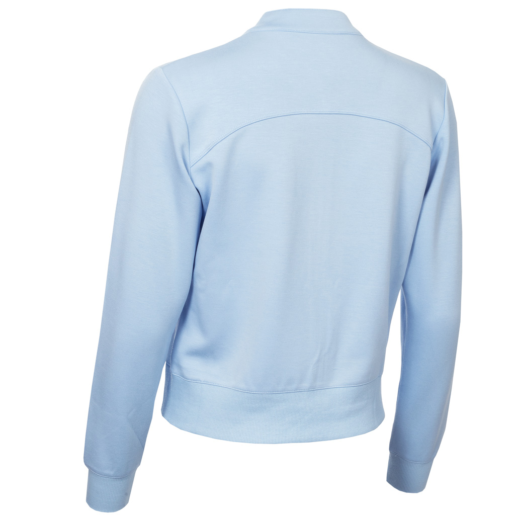 De Freya Full Zip van Calvin Klein is een comfortabel vestje in de look van een bomberjacket wat momenteel heel modieus is. Lekker voor koudere dagen op de golfbanen. Het jacket voelt heerlijk zacht aan door het viscose materiaal. 51% polyester 43% viscose 6% elastane. Kleur Blue Bell