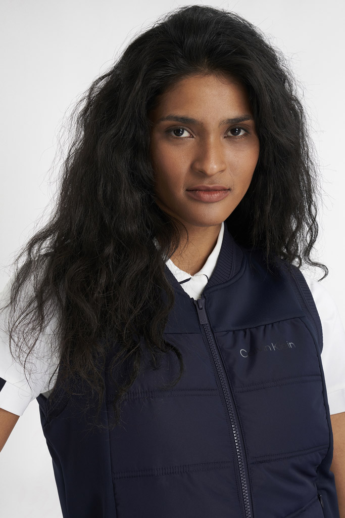 Het Hadleigh Hybrid Gilet van Calvin Klein is een sportieve bodywarmer, perfect voor koudere zomerdagen op de golfbaan, gemaakt van comfortabel stretchy materiaal dat zorgt voor optimale bewegingsvrijheid. 84% polyester 16% elastane. kleur Navy.
