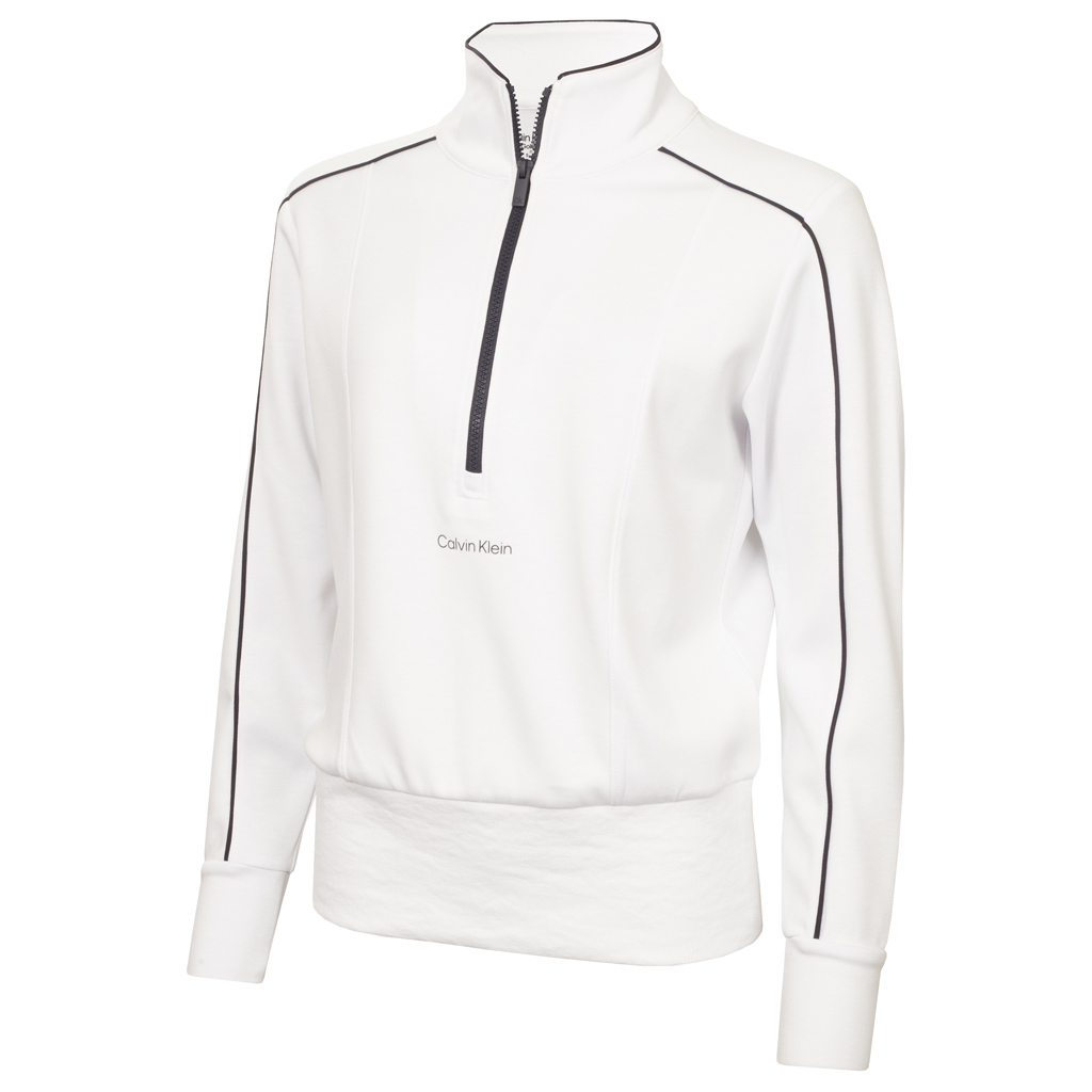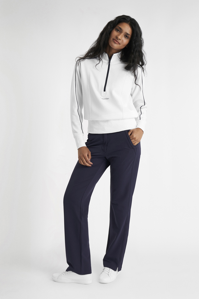 De Quinta Quarter Zip Top van Calvin Klein is absoluut onze persoonlijke favoriet! Een lekkere stoere sportieve sweater met halve ritssluiting en sportieve belijning op de mouwen. Voelt heerlijk zacht aan. 51% polyester 43% viscose 6% elastane. Kleur White