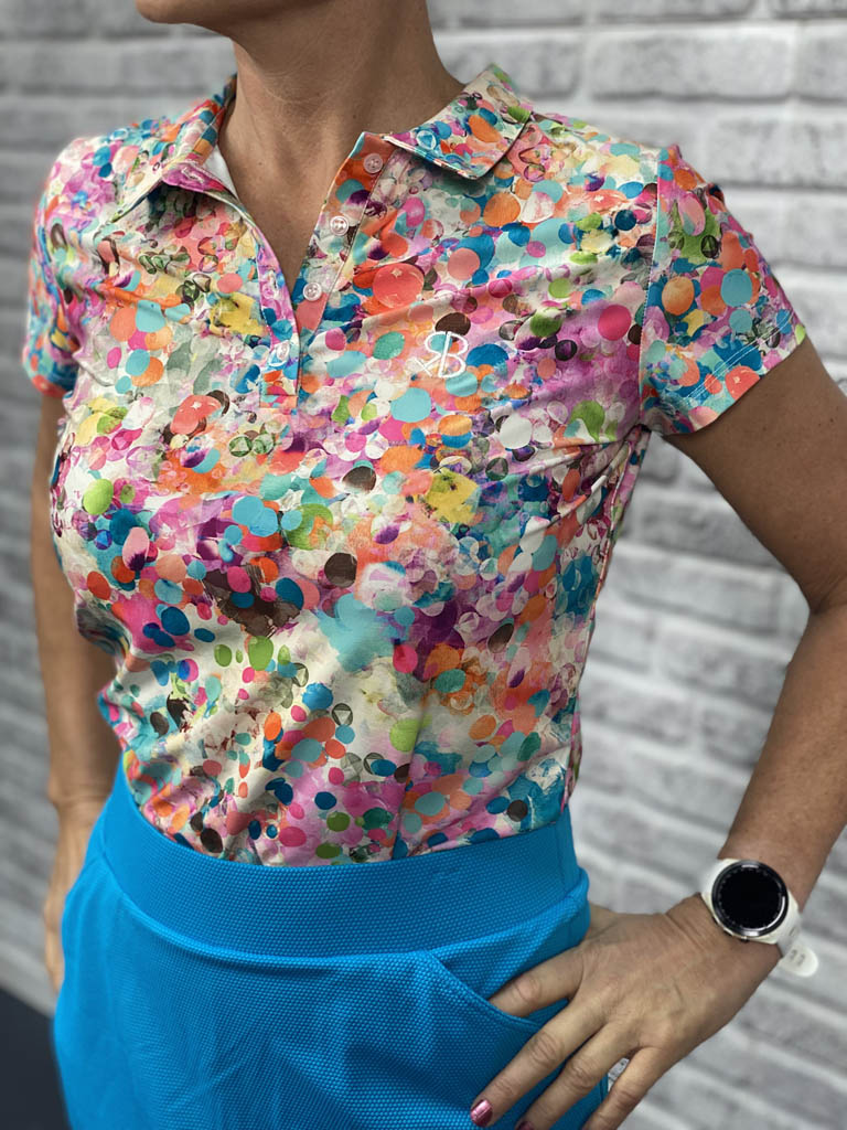 Het Swing poloshirt van Chiberta is een geweldig leuk damesshirt in kleurrijke print. Deze print is toch wel een van onze persoonlijke favorieten dit jaar. Kan namelijk met ontelbare rokjes gecombineerd worden. Knoopsluiting. Gemaakt van comfortabel stretchy materiaal. 85% polyester, 15% elastane.