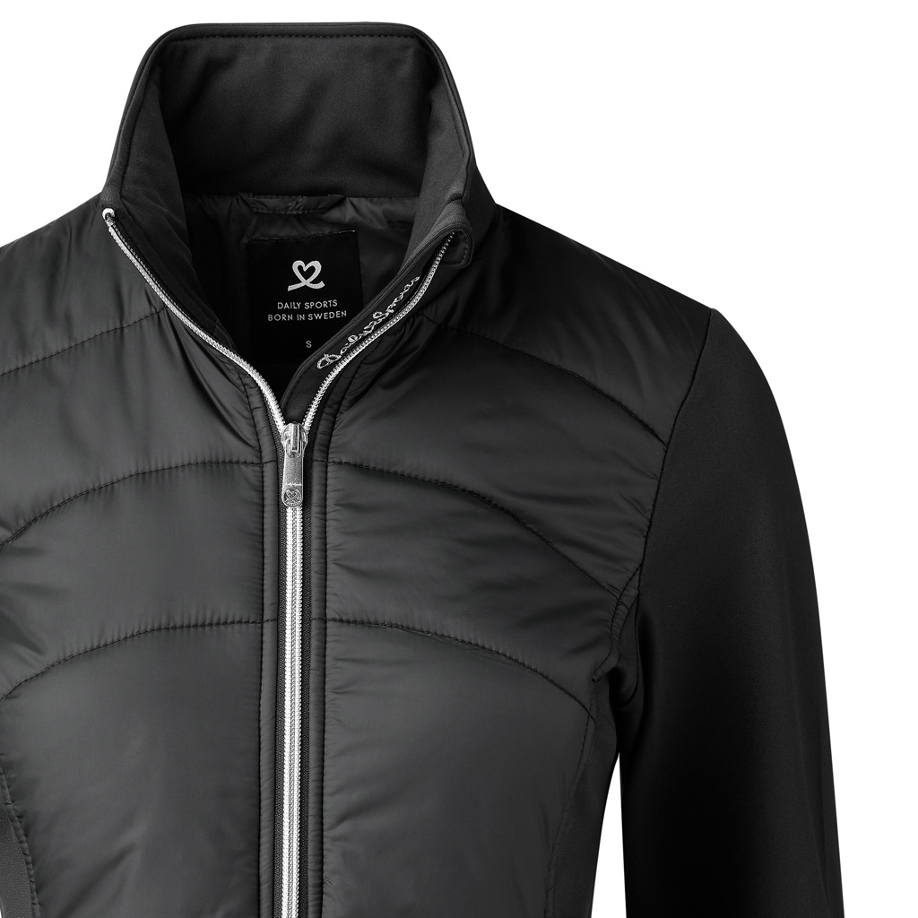 Dit Brassie jacket van Daily Sports zit supercomfortabel. Dit mooie en warme damesjasje heeft een padding aan de voor- en achter-zijde en heeft stretchy zijkanten en armen voor maximale bewegingsvrijheid. Deze golfjas is wind en waterafstotend. Perfect voor de frisse dagen op de golfbaan! De golfjas heeft een hoge kraag en een dubbele ritssluiting. Twee steekzakken met ritssluiting aan de voorzijde. Materiaal 100% polyester. Een sportief jasje dat ook casual gedragen kan worden.  Kleur zwart.