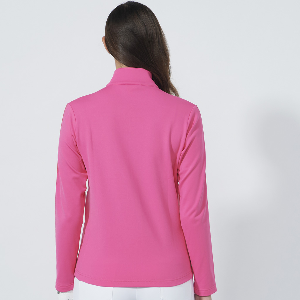 De sportieve Cholet Longsleeve met hele ritssluiting van Daily Sports is gemaakt van heerlijk zacht materiaal en heeft een mooie bies op de mouwen. Dit is dus een vestje! Dit comfortabele golfvest heeft een half neck opstaande kraag, een ritssluiting en is gemaakt van sneldrogend materiaal. Het vestje voelt aan de binnenzijde ook heerlijk zacht aan. Chique en sportief! Perfect voor over je poloshirt bij een rokje of over je golfjurkje als het iets kouder is in de zomermaanden. Echt dus een item dat je niet wilt missen in je golfgarderobe. Steekzakken met ritssluiting. Materiaal 94% polyester, 6% elastan. Kleur radiant pink