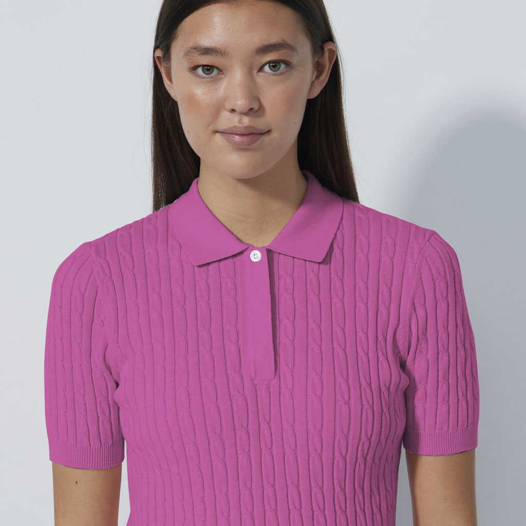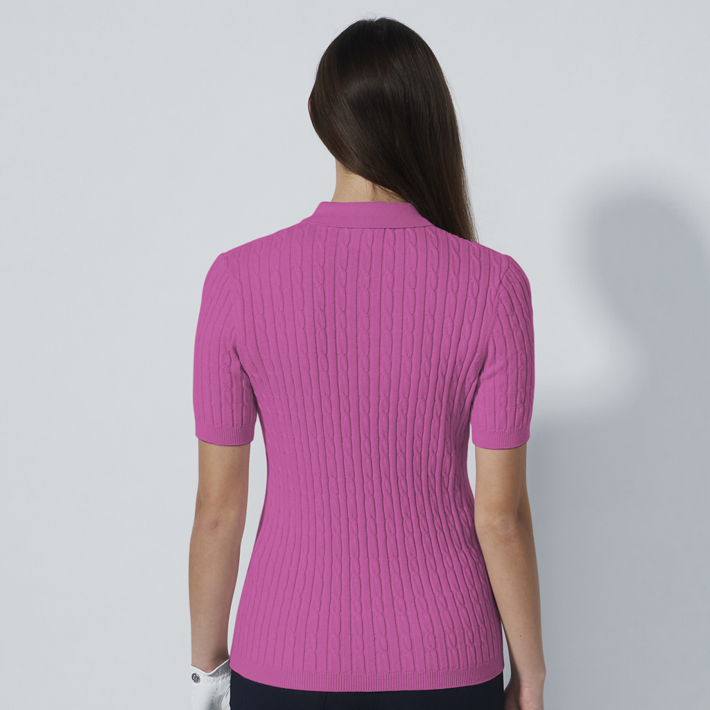 Het Madelene poloshirt van Daily Sports is een classy damesshirt met korte mouwen in een kabelpatroon en dit model is inmiddels een echte Bestseller geworden. De damespolo is gemaakt van comfortabel zacht katoen materiaal met een touch van cashmere voor een heerlijk zacht gevoel. 95% katoen, 5% cashmere. Kleur radiant pink. Valt normaal tot ietsje ruimer uit.