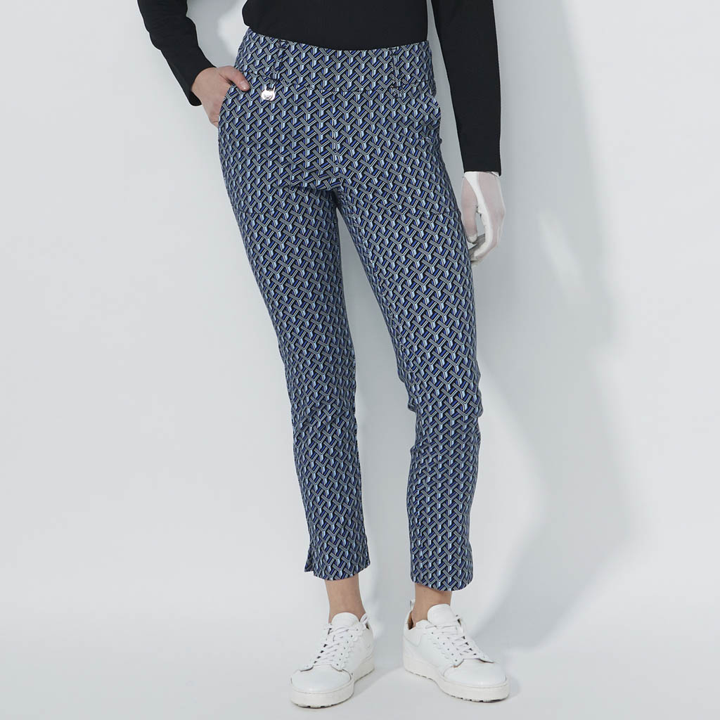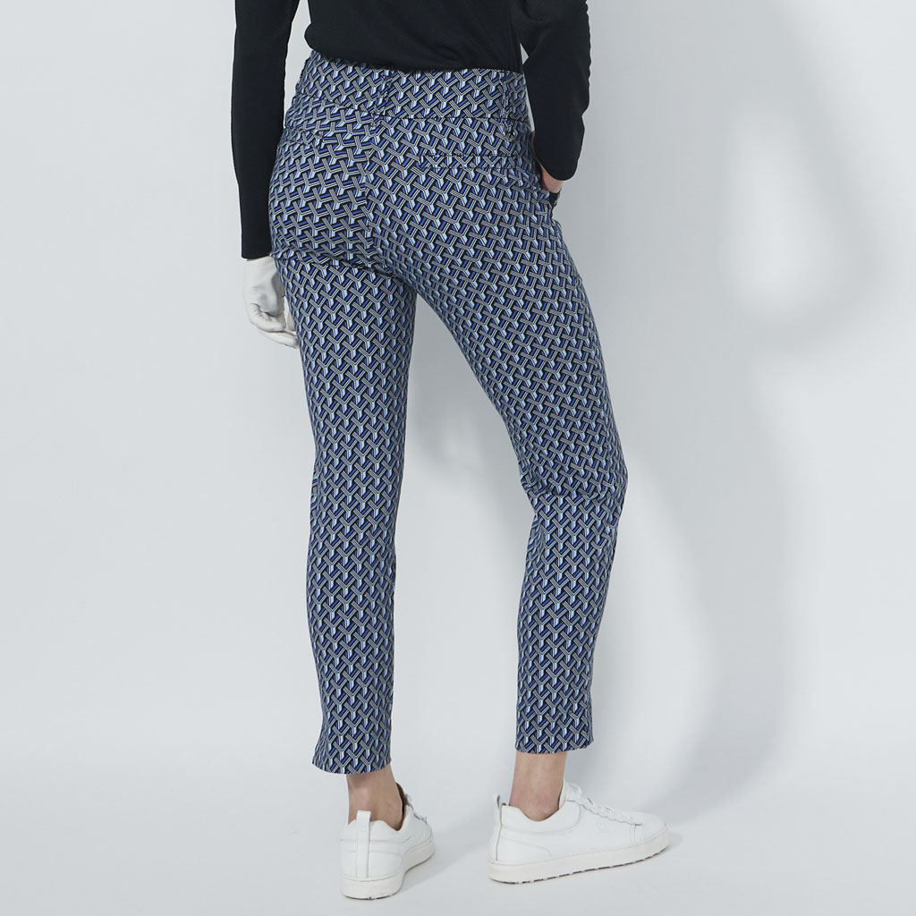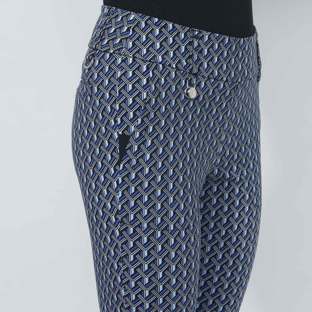 De Magic Twisted Geo damesbroek van Daily Sports is een pull-on model gemaakt van superstretch materiaal voor een magic comfortabele pasvorm. Door het stretchy materiaal valt deze broek wel wat groter uit. Steekzakken aan voor- en achterzijde. Viscose 77% Polyamide 20% Elastane 3%. De lengte van deze high water golfbroek is 94 cm. enkellengte. Mooi om te combineren met navy blauw en lichtblauw. Kleur Twisted Geo.