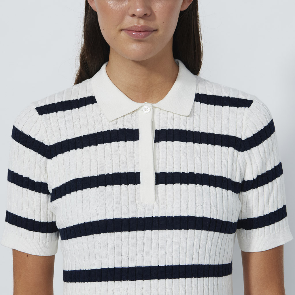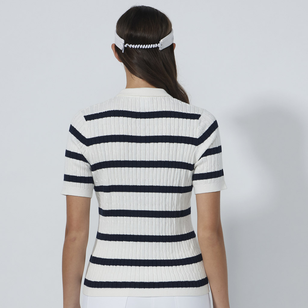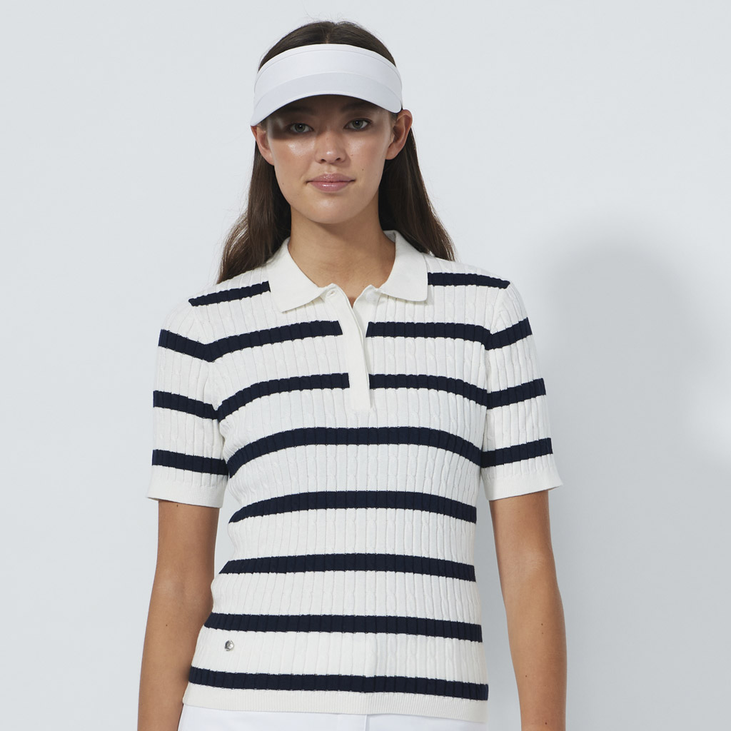 Het Madelene poloshirt van Daily Sports is een classy damesshirt met korte mouwen in een gestreept kabelpatroon en dit model is inmiddels een echte Bestseller geworden. De damespolo is gemaakt van comfortabel zacht katoen met een touch van cashmere voor een heerlijk zacht gevoel. 95% katoen, 5% cashmere. Kleur Navy White. Valt normaal tot ietsje ruimer uit.