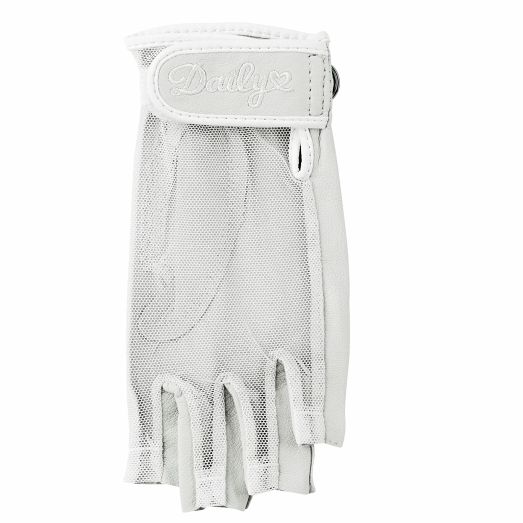 Dit zondoorlatende handschoentje van Daily Sports is perfect voor de zomerse dagen. De handschoen is gemaakt van hoogwaardig cabretta leder en heeft halve vingers voor optimaal comfort tijdens warme temperaturen. 50% cabretta leder 50% polyester. Kleur wit.