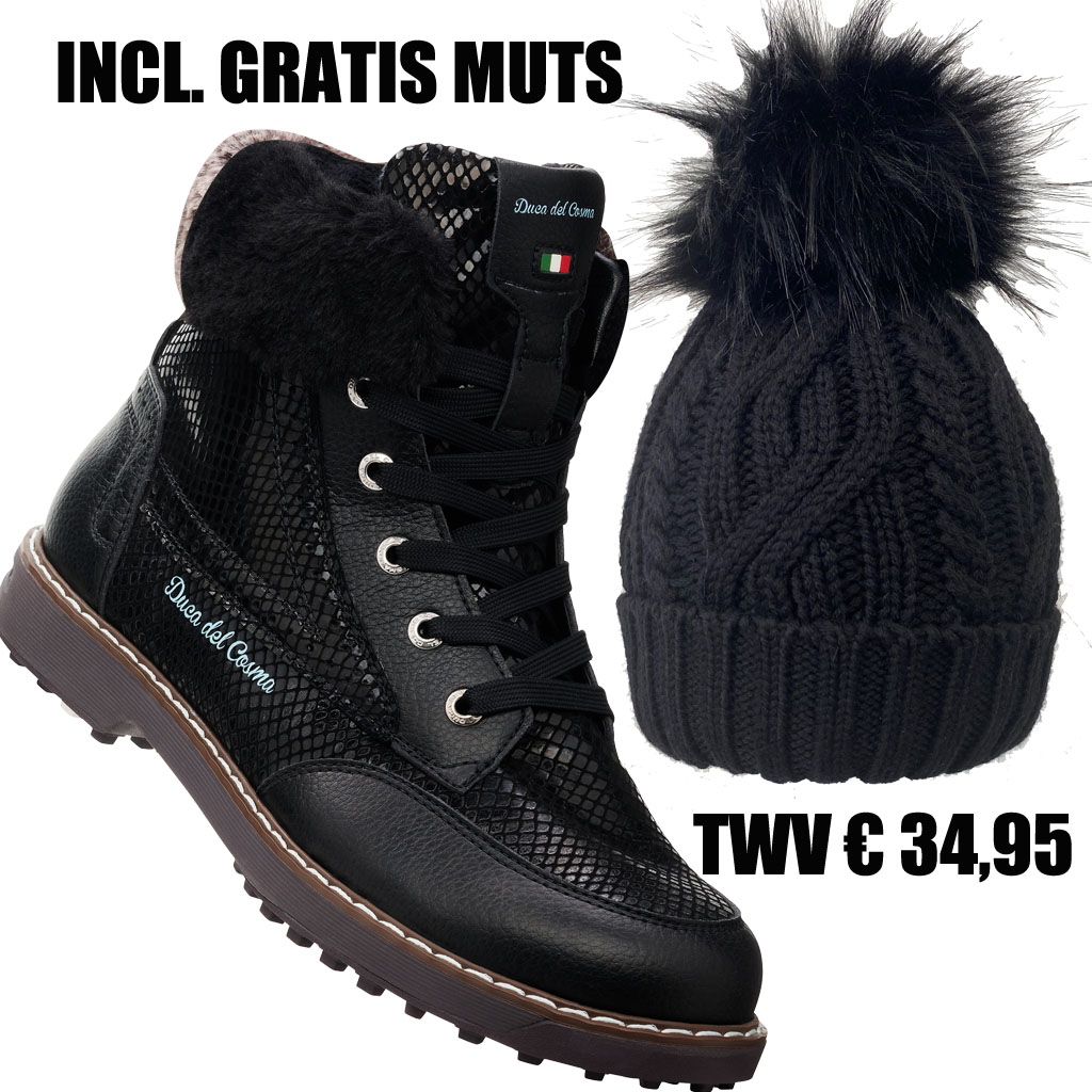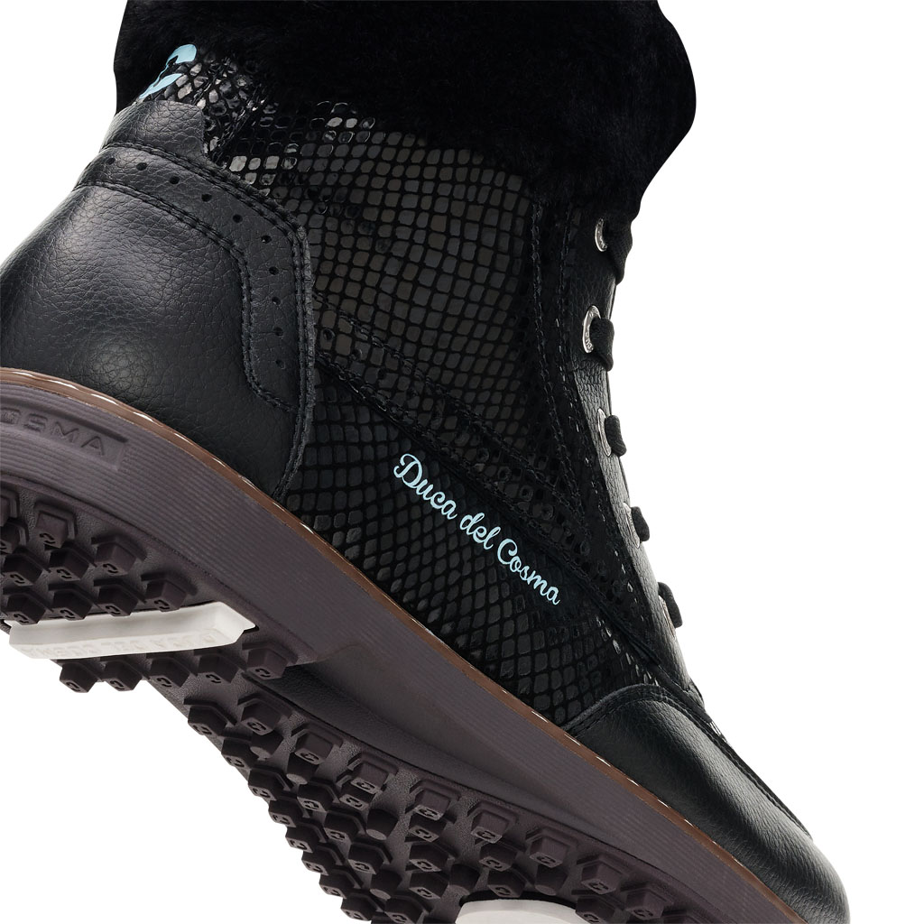 De Sofia winterlaarzen van Duca del Cosma zijn waterdichte winterboots voor koude en natte dagen op de golfbaan. De stijlvolle dameslaarzen hebben een waterdicht Bootie-systeem voor droge voeten. Gemaakt van luxueus leder. De spikeloze rubberen Milano-buitenzool zorgt voor uitstekende grip en stabiliteit. De laarsjes hebben een licht gewicht, en hebben een premium zachte voering voor een comfortabel gevoel. Nu incl. gratis waterdichte muts met afneembare pompom twv € 34,95. Gratis verzending. Kleur zwart