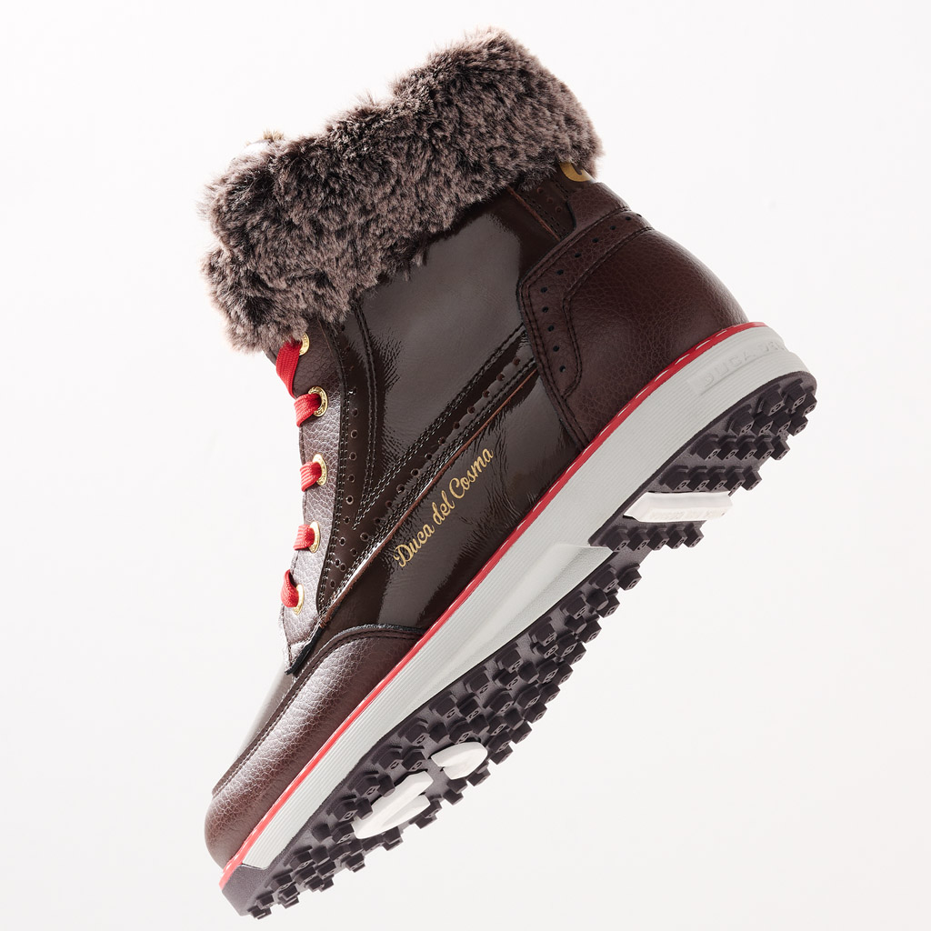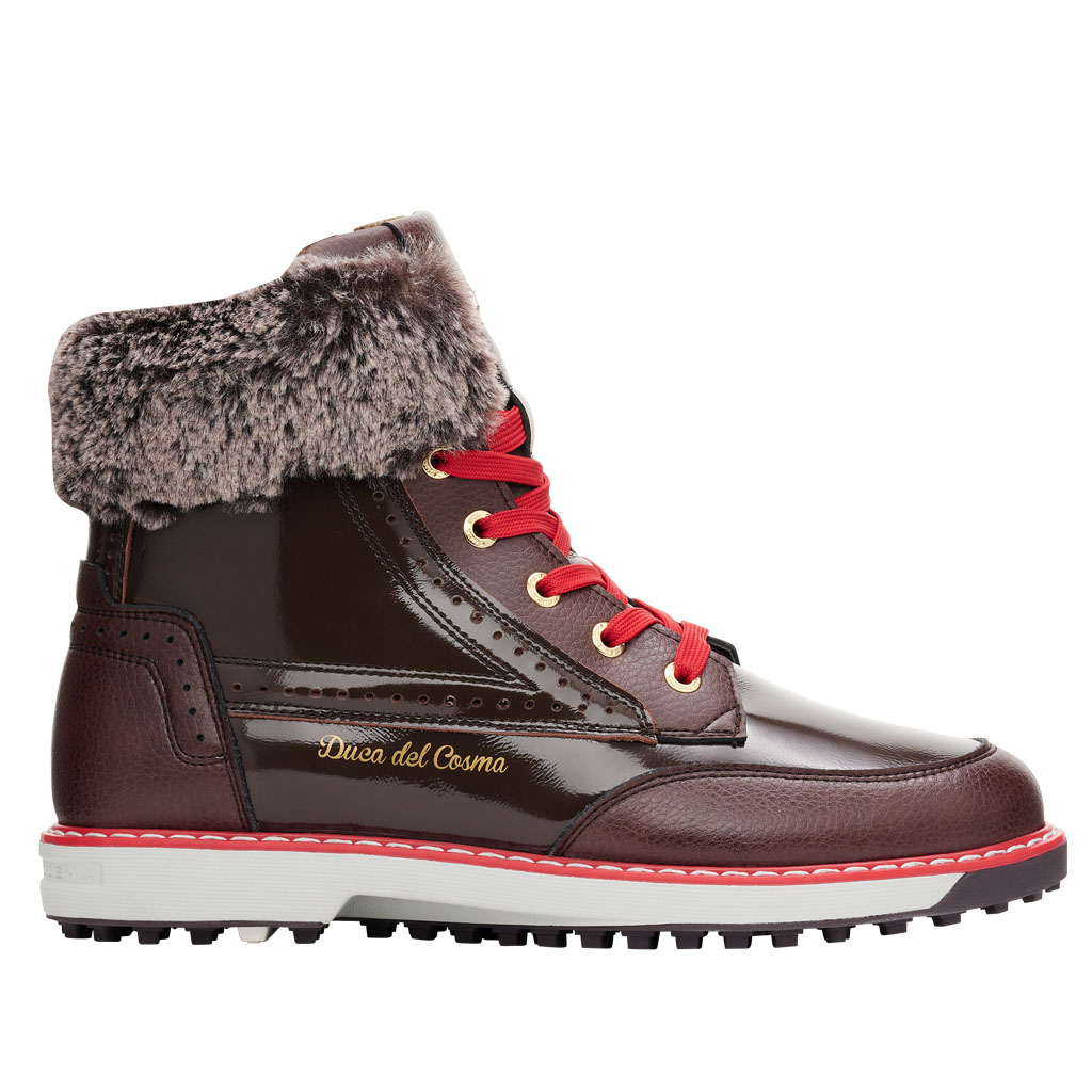 De Sofia winterlaarzen van Duca del Cosma zijn waterdichte winterboots voor koude en natte dagen op de golfbaan. De stijlvolle dameslaarzen hebben een waterdicht Bootie-systeem voor droge voeten. Gemaakt van luxueus leder. De spikeloze rubberen Milano-buitenzool zorgt voor uitstekende grip en stabiliteit. De laarsjes hebben een licht gewicht, en hebben een premium zachte voering voor een comfortabel gevoel. Nu incl. gratis waterdichte muts met afneembare pompom twv € 34,95. Gratis verzending. Kleur bruin.