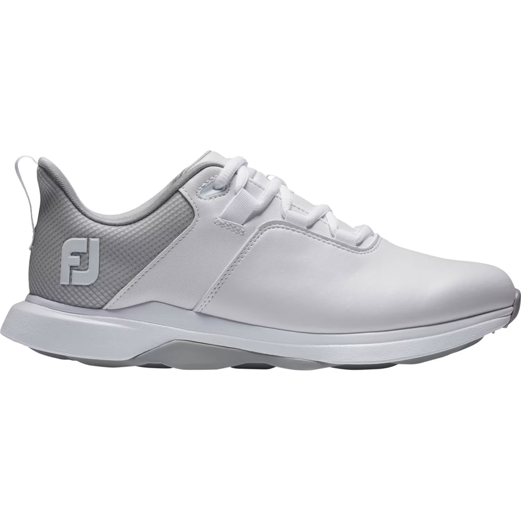 De ProLite golfschoen van FootJoy is een sportieve damesschoen. De schoen biedt stevige ondersteuning, is van uitstekende kwaliteit en bovendien waterdicht. Het bovenmateriaal is gemaakt van chromoskin leder, een eersteklas zacht leder. De schoenen zijn ademend en de rubberen zool zonder spikes zorgt voor optimale grip en tractie op de golfbaan. De zachte EVA tussenzool zorgt voor meer demping, comfort en stabiliteit. Basiskleur wit met grijs. Nu zeer scherp geprijsd.