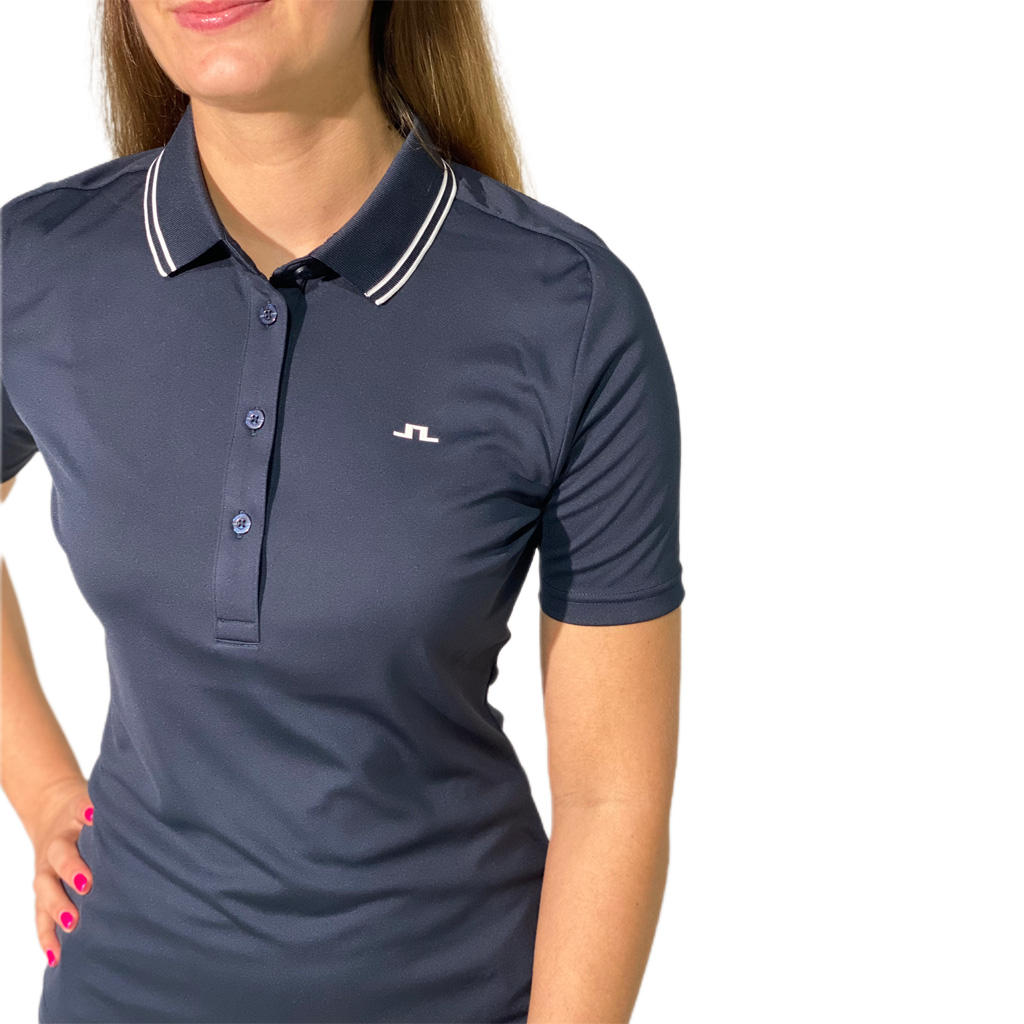 De Gunilla Polo van J.Lindeberg is een mooie basispolo en biedt een eigentijdse kijk op een onmisbare prestatie. De zachte, technische stof biedt stretch en ademend vermogen voor comfort gedurende de hele dag. Dankzij een geraffineerde geribde kraag en op maat gemaakte pasvorm is hij functioneel en stijlvol voor zowel actieve als casual activiteiten. Gemaakt van sneldrogend materiaal. Knoopsluiting met 4 knopen. 100% Polyurethane Kleur navy.