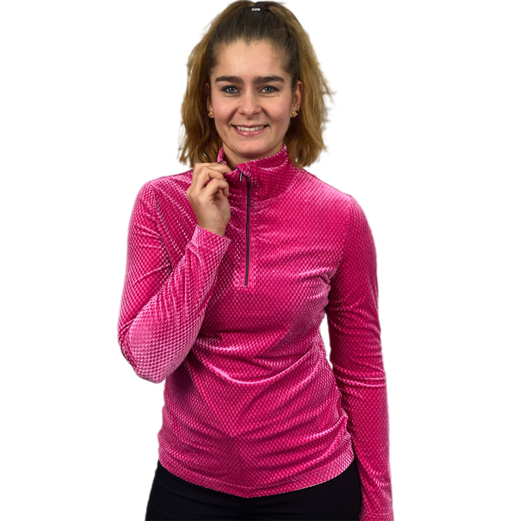 De Ahkiolahti longsleeve van Luhta is een echte eyecatcher. Dit damesshirt heeft een geweven motief en een prachtige fluwelen glans voor de echte Divas. Het comfortabele 4-way stretchy materiaal rekt in alle richtingen mee en biedt maximale bewegingsvrijheid. Ademend. Dit golfshirt houdt je heerlijk warm op de koudere golfdagen. Het damesshirt heeft een sportieve opstaande kraag met halve ritssluiting. Kleur raspberry met een fluweelglans. Geschikt voor actief en casual. Materiaal 93% polyester, 7% elastane.