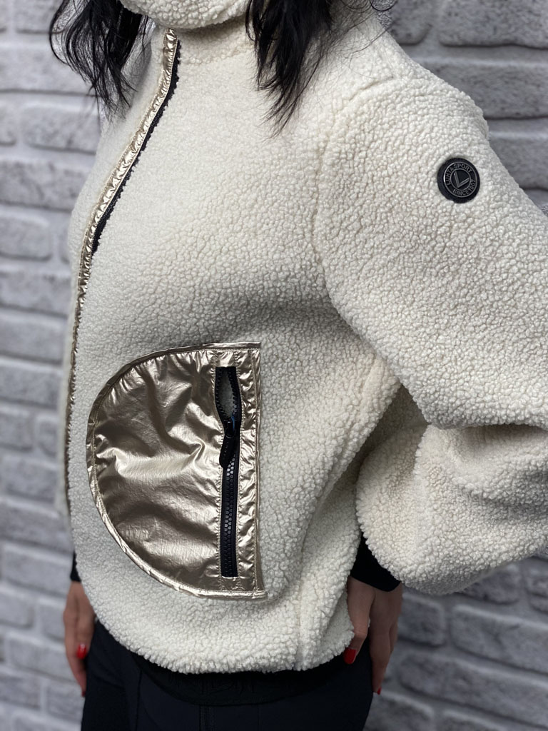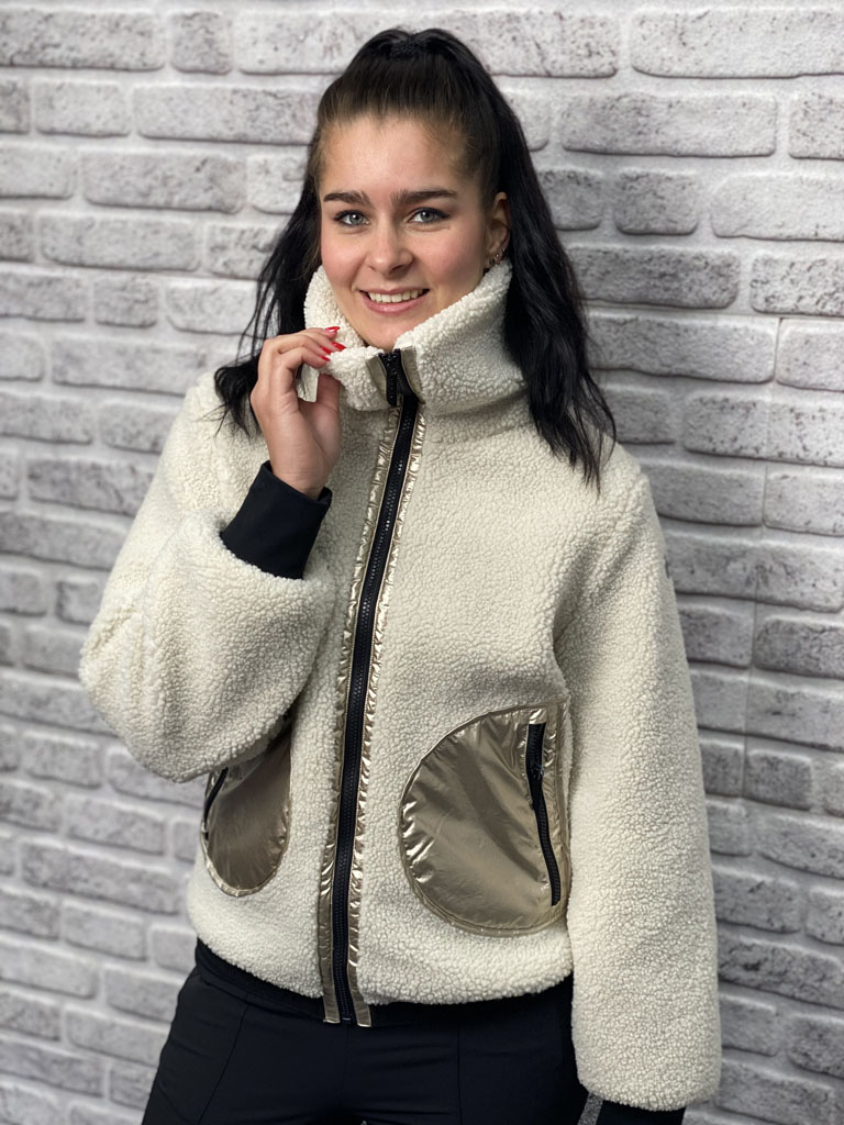Het Iskoinen vest van Luhta is een comfortabel dik vest in teddy look. Het damesvest heeft opzet steekzakken met rits. De tailleband is speels uitgewerkt. Hoge col. Valt normaal in de maat. Kleur powder white.