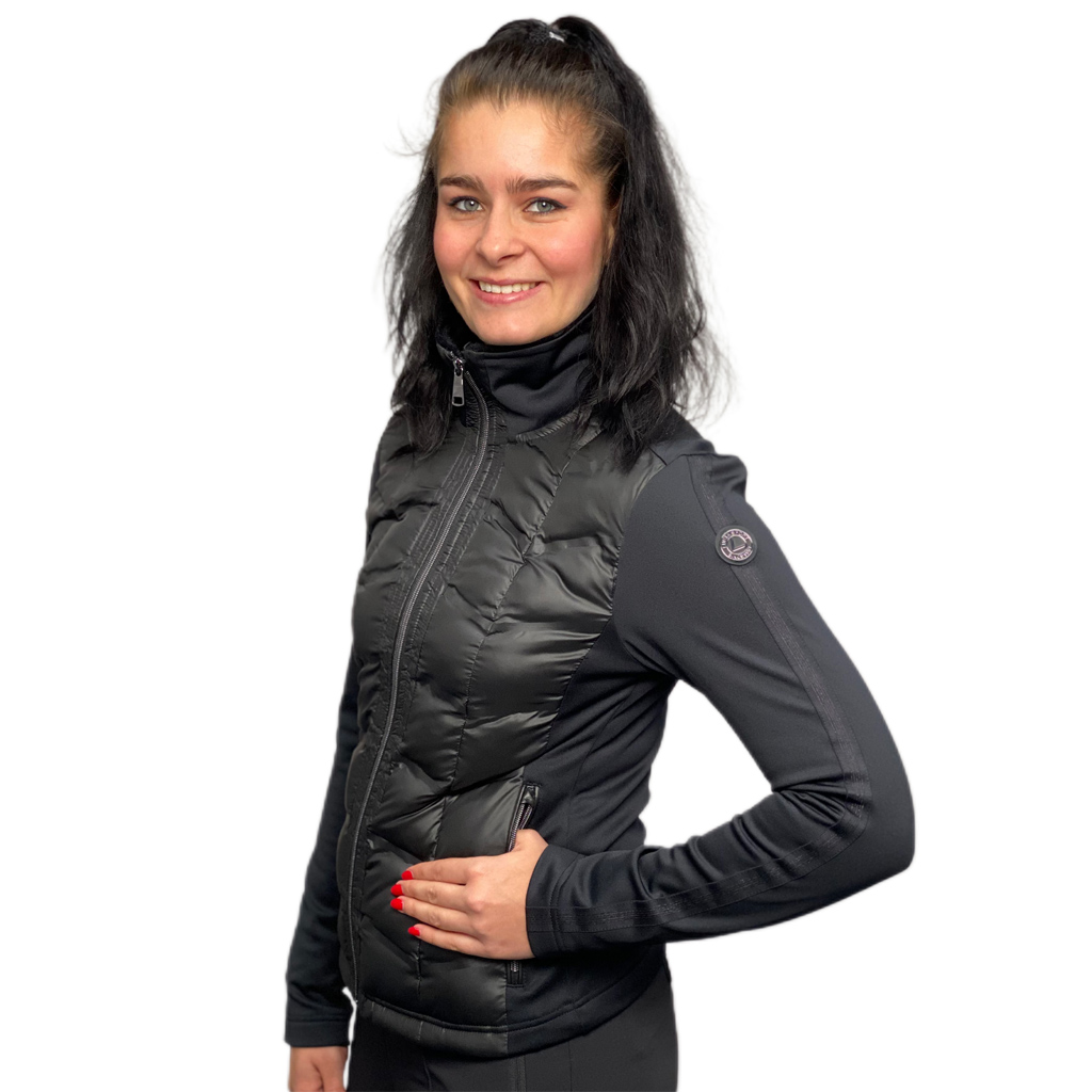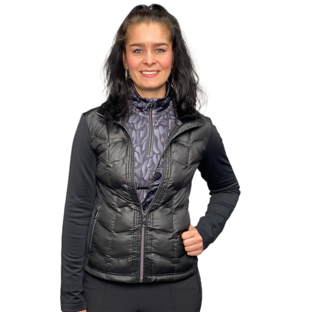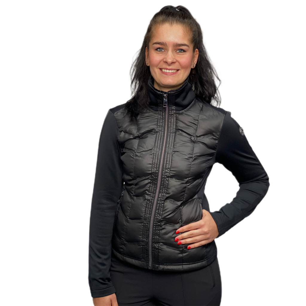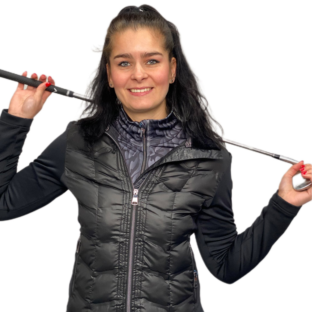Het Pallastunturi jacket van Luhta is een fantastisch hybride damesjasje met padding aan de voorzijde. Perfect voor koudere dagen op de golfbaan en ook casual zeer comfortabel om te dragen. Gemaakt van stretchy materiaal dat zorgt voor optimale bewegingsvrijheid. Het sportieve jack heeft een kraag van nepbont, steekzakken met ritssluiting en heeft een mooie glans voor een echte Diva look. 92% polyester 8% elastane. Kleur zwart
