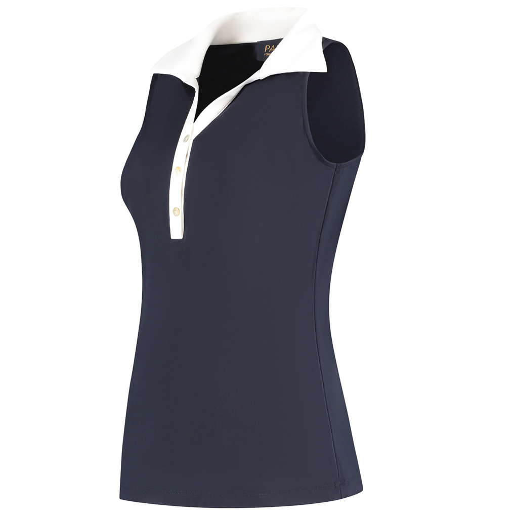 De Bardot top van PAR69 is een prachtige damespolo met een extra brede kraag voor een chique Diva look. Knoopsluiting. Polyamide 60% Elastane 40%. Het stretchy materiaal zorgt voor optimaal comfort en maximale bewegingsvrijheid. Kleur dark navy white. Valt normaal in de maat.