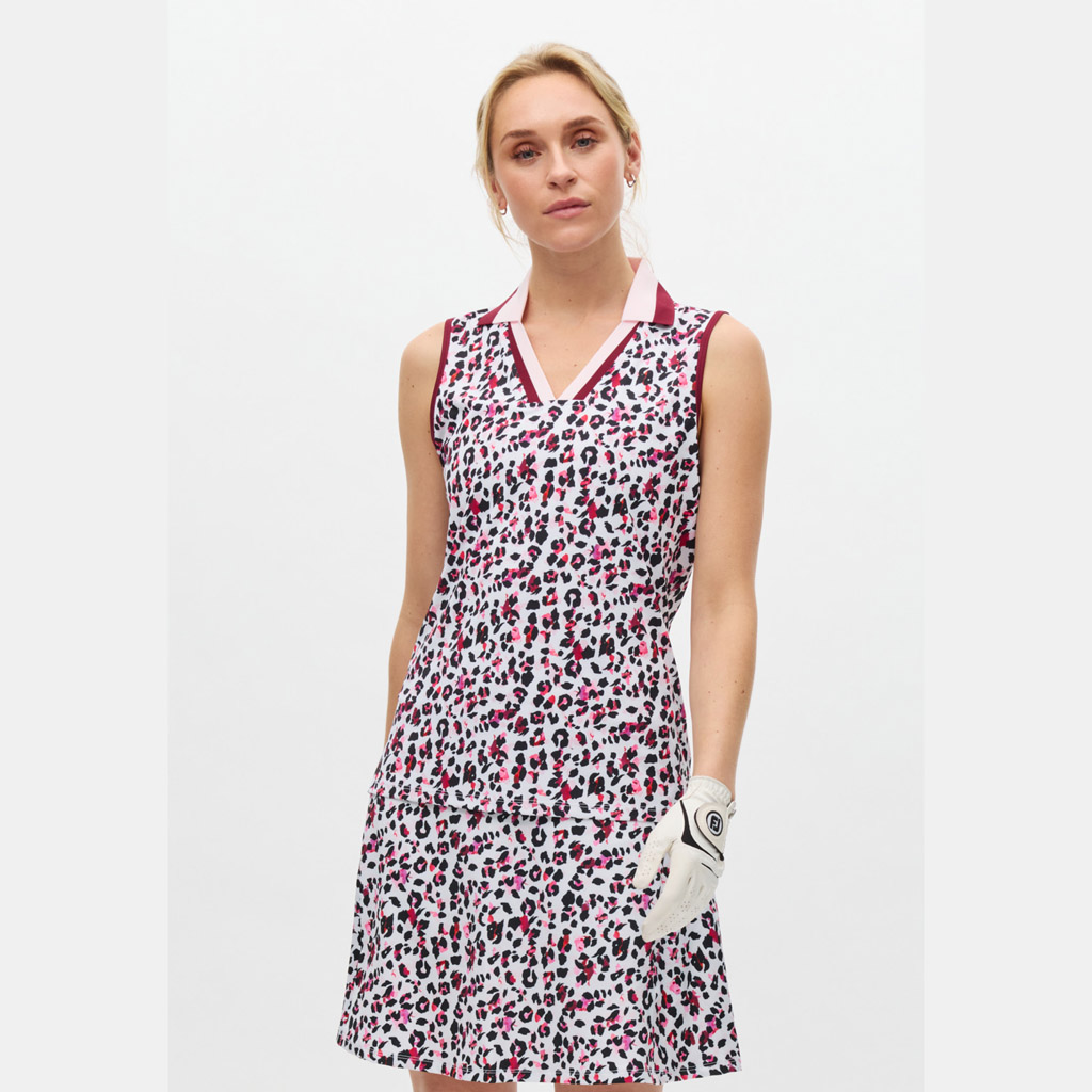 Het Essential Sleeveless poloshirt van Röhnisch is een sportief mouwloos damesshirt dat gemaakt is van zacht jersey materiaal. Het shirt is ademend en drijft vocht uit. Open V-hals. Het stretchy materiaal zorgt voor optimale bewegingsvrijheid. 87% gerecycled polyester 13% elastane. Kleur Leo Pink/Beet