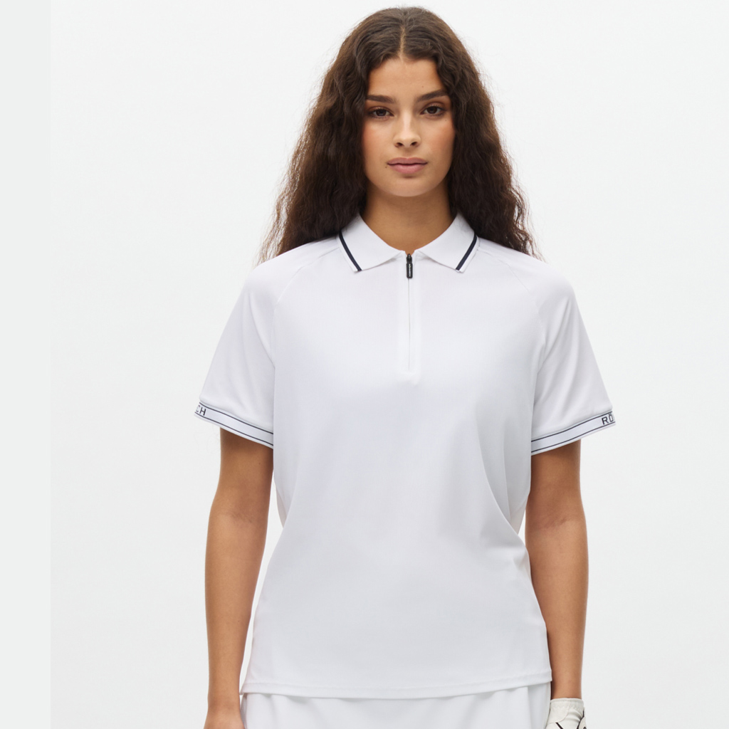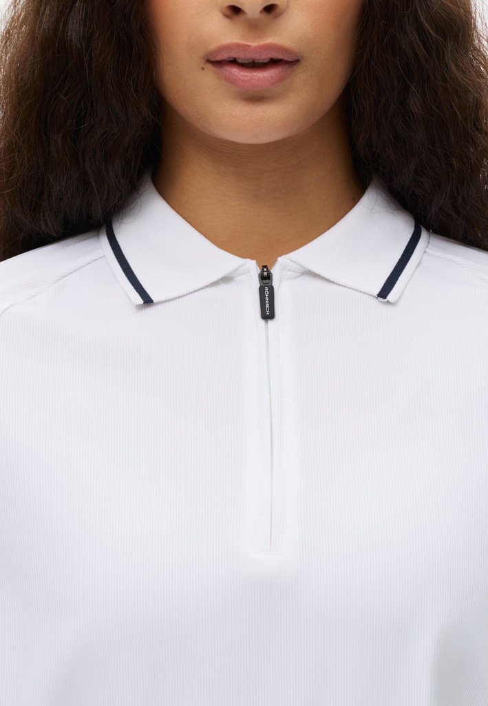 Het Rib poloshirt van Röhnisch is een zeer stijlvol damesshirt gemaakt van rib jersey. Deze damespolo is gemaakt van ademend, zacht, gerecycled polyester 88% en 12% elastane. Het stretchy materiaal zorgt voor optimale bewegingsvrijheid. Halve ritssluiting. Kleur white